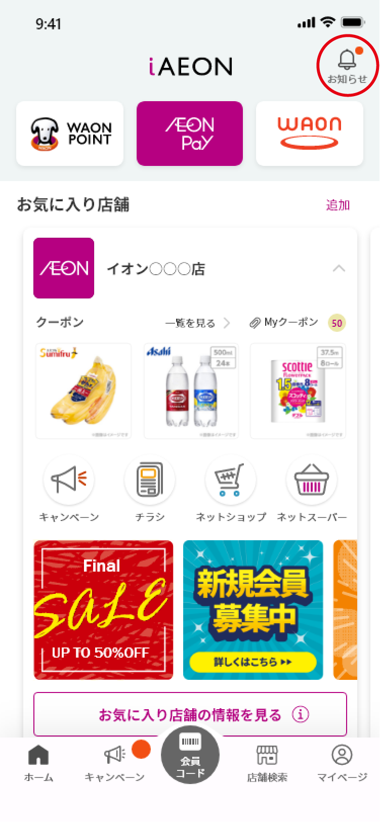 お客さまの個人情報は、ポイント進呈および「iAEON利用規約」「AEON Pay利用規約」「WAON POINT関連規約」の定めに従い、お客さまの情報として取扱います。